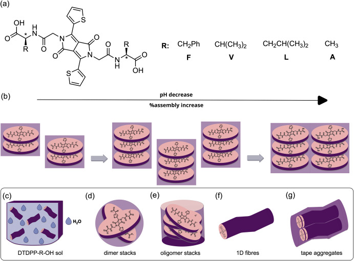 Charge repulsion can be used to control the supramolecular aggregation of amino acid-substituted diketopyrrolopyrroles in water, leading to distinct aggregation states with different photophysical properties. This simple approach allows for tuning optical gaps, electroactivity, and exciton binding energies, expanding the absorbance range and creating systems with large Stokes shifts without the need for extensive synthetic optimisation.