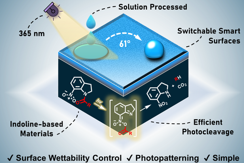 Simple Photocleavable Indoline-based Materials for Surface Wettability Patterning